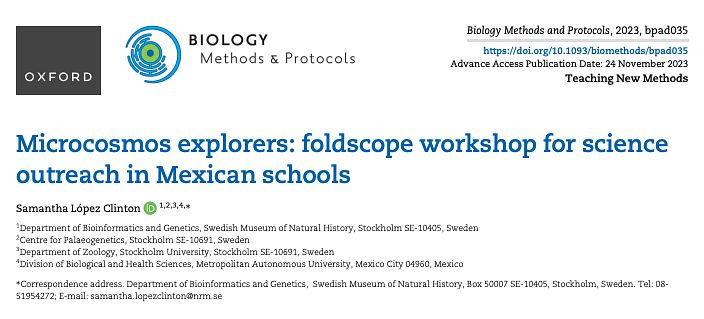 Después de recibir una invitación a contribuir a una edición especial de educación de la ciencia en Biology Methods and Protocols, escribí un artículo sobre el taller (haz click aquí para ver el artículo).